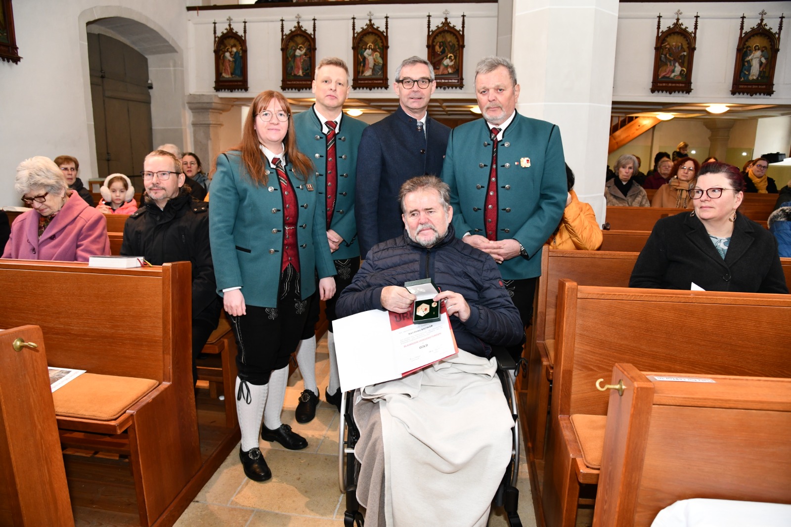 Am Sonntag, den 08.02.2026, fand in der Pfarrkirche Pennewang die feierliche Musikmesse statt. Im Rahmen dieses besonderen Anlasses wurde unser Ehrenkapellmeister Karl Bachler für seine langjährigen und engagierten Dienste an der Musik gewürdigt. Wir durften Ihm den Verdienstorden in Gold verleihen. Die musikalische Gestaltung der Messe verlieh der Veranstaltung eine festliche und bewegende Atmosphäre, die sowohl die Mitwirkenden als auch die Besucher tief berührte.