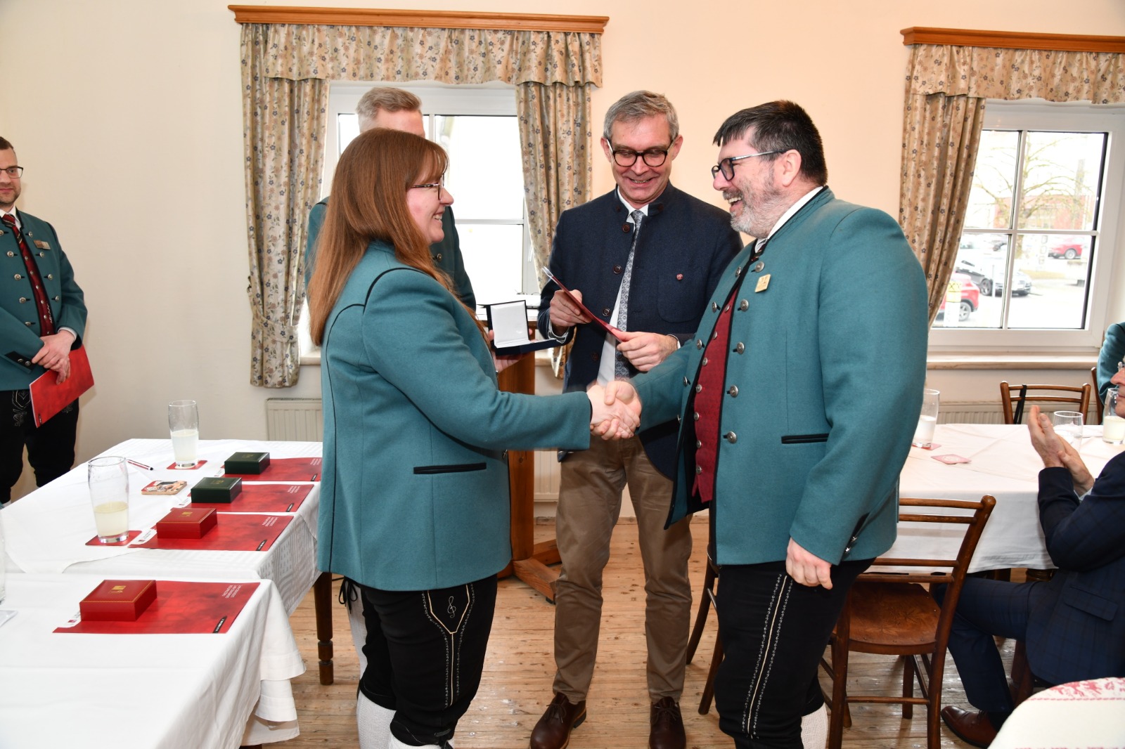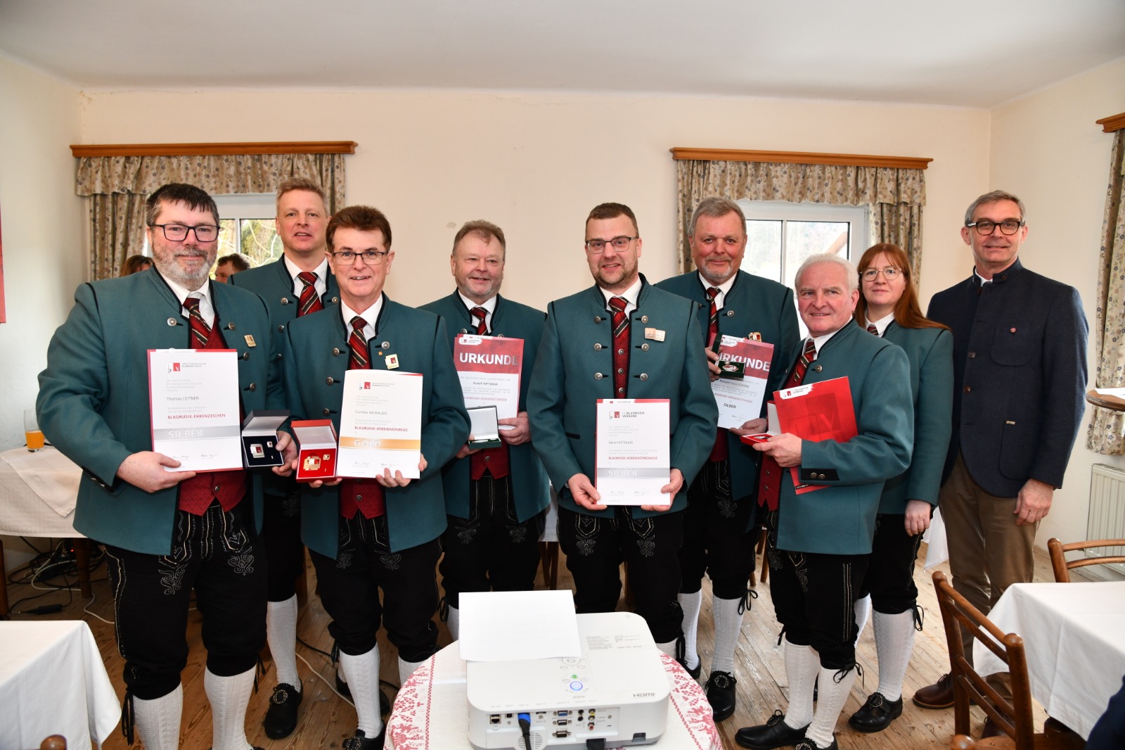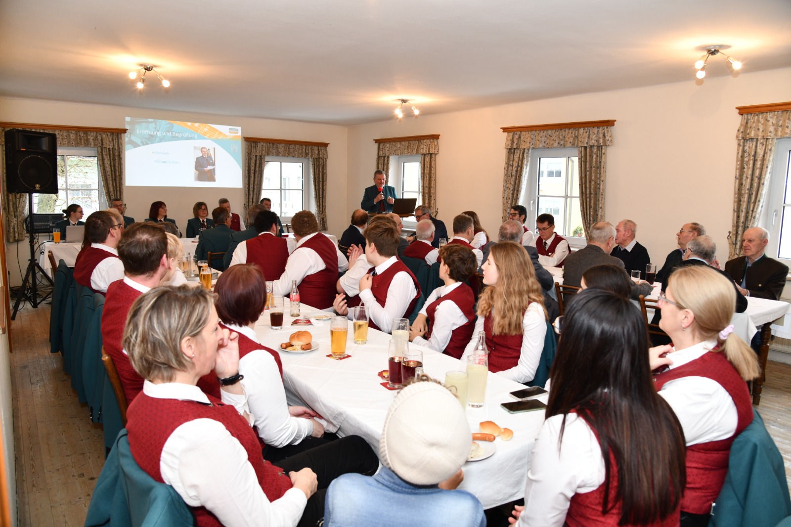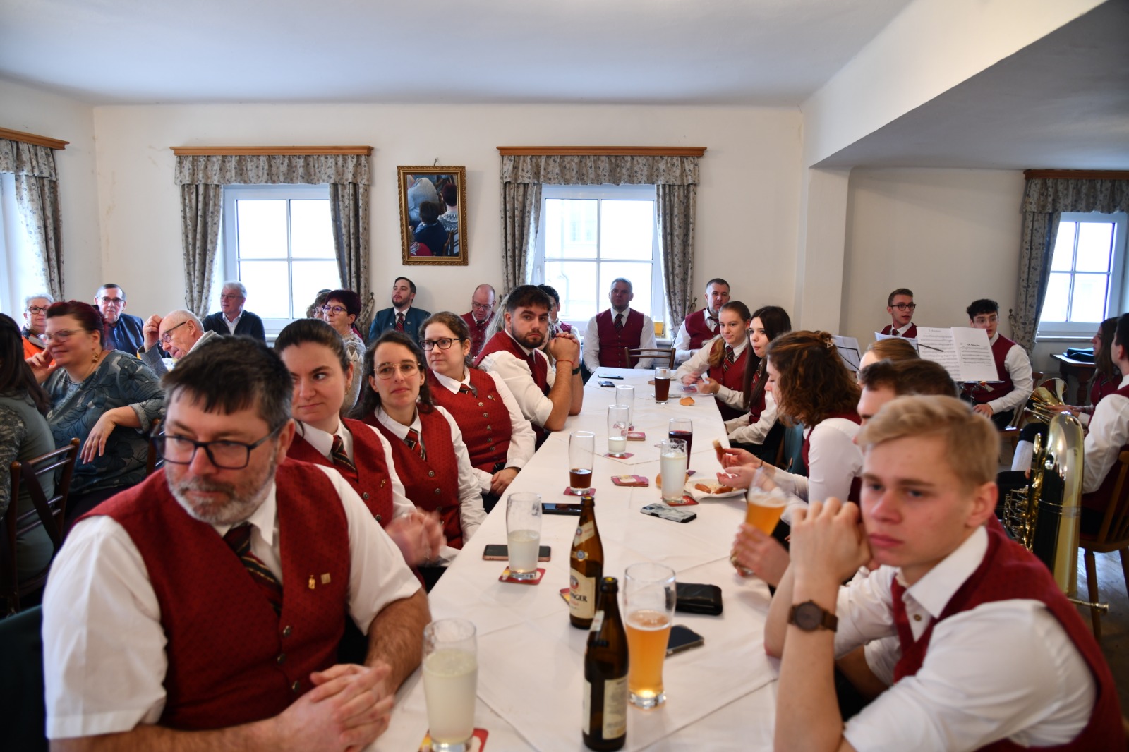 Im Anschluss an die Musikmesse versammelten sich die Teilnehmer im Gasthaus Bauer zur Generalversammlung. Dort wurden auch mehrere verdiente Musikerinnen und Musiker für ihre langjährigen und besonderen Dienste mit den verschiedenen Auszeichnungen und anerkennenden Worten geehrt. Die feierliche Stimmung setzte sich fort und bot einen würdigen Rahmen für die Wertschätzung des musikalischen Engagements innerhalb der Gemeinschaft.