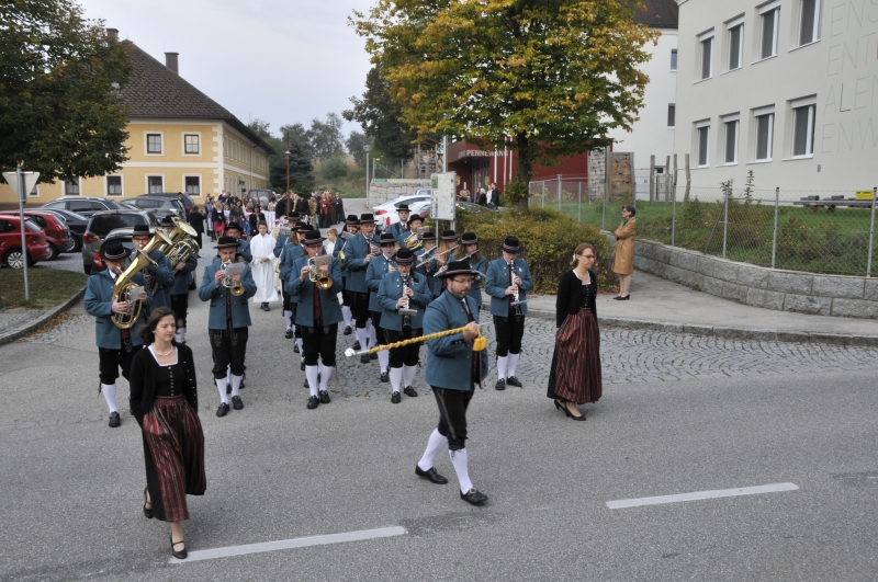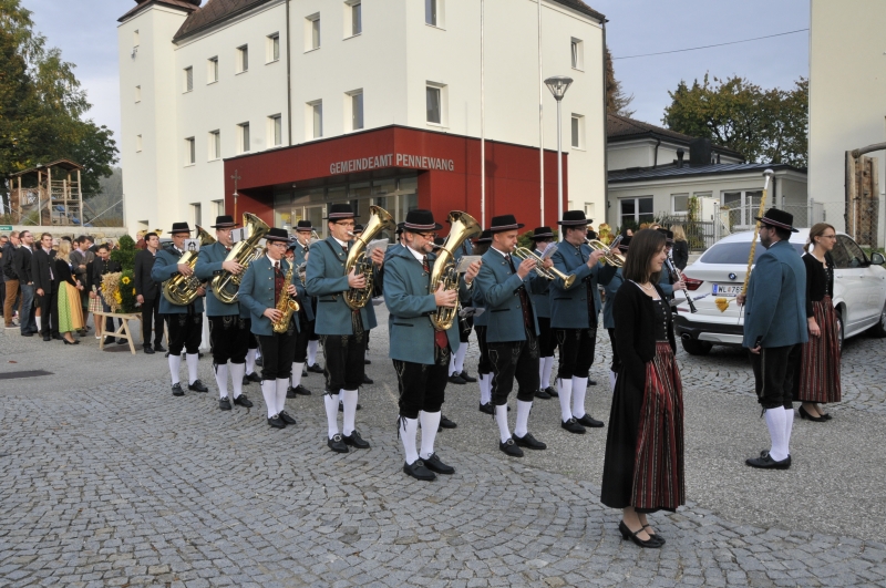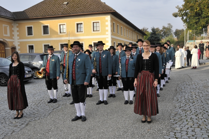 Das Erntedankfest mit der Jubelhochzeitsfeier ist zum fixen Bestandteil im Vereinsjahr geworden, bei dem die Musik den Umzug von der Gemeinde in die Kirche anführt und im Anschluss noch ein paar Märsche zum Besten gibt.
