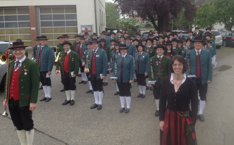In 7er Reihen marschierten wir vom Musikheim in Bachmanning zur Kirche, wo wir nach der Trauungsmesse noch einige Stücke zum Besten geben konnten.